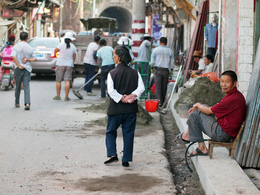 Jelikož sem nejezdí moc západních turistů, tak najít hotel s povolením ubytovávat cizince je docela problém. Místo toho, který je popsán v turistickém průvodci, jsem našel jen oprýskanou ruinu s ocelovou tyčí vraženou mezi madla dveří. „Tady už se asi neubytuješ,“ vysype na mě přes lehce sarkastický úsměv chlápek s nápadně snědou kůží, který stojí opřený o roh baráku a v puse cucá párátko. Budovy v Číně chátrají neuvěřitelně rychle. Asi tak rychle, jak domněle blahodárný čínský rozvoj válcuje stopy dávné minulosti. Proto u sebe vždycky nosím svůj kapesní foťák. Mám nějaký vnitřní pocit, že to málo co dodnes zbylo takřka nedotčené či nevkusně nerekonstruované, tady už za 14 dní nemusí být, a proto je to třeba zdokumentovat.