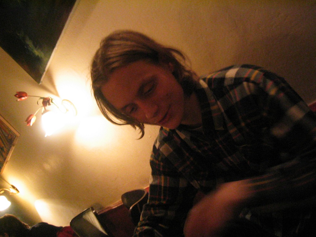 Problém byl se stativem. Jelikož žádný rozumný nemám, museli jsme improvizovat. Nakonec jsme si vystačili s dvěma reprobednami, na ně položili squashové rakety upevněné nití a ně potom fotoaparát. Jelikož reprobedny nebyly dostatečně vysoké, musel jsem na ty rakety naskládat ještě pár scénářů z Národního divadla, mj. her Coriolanus, Romeo a Julie apod.