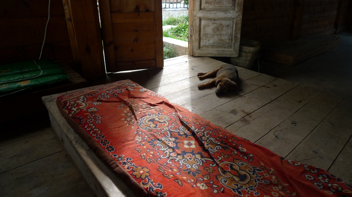 Pohádkovou krajinou jsme vystoupali až pod svatou horu Mosuů, kterou jsme nezdolali. Počasí to nedovolilo. A tak jsme alespoň vzali za vděk přístřeškem, který nám poskytnul ten největší hipík a anarchista ze všech. Žil tam v dřevěné chýši se stádem koz, jednou slepicí, psem (který málem pokousal Noru) a s asi stovkou lahví pálenky. Nemyl se odhadem tak nikdy. Do pečlivě sterilizované mističky mi nalil lampu tohoto kultovního chlastu, sám jej ucucával ze skleněné termosky. Noře z ruky vyvěštil, že bude mít tři syny a dvě dcery. Nabídnul mi i houbu opečenou v ohni. Na delší konverzaci nebyl čas ani slovní zásoba. Jeho čínština byla poznamenána velmi nesrozumitelným přízvukem...