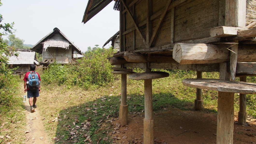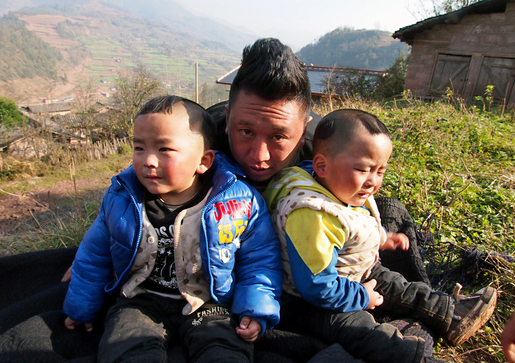 Kuang-ta s nově opravenými domky. Kousek níže se nad opravnou kol skvěl nápis „
