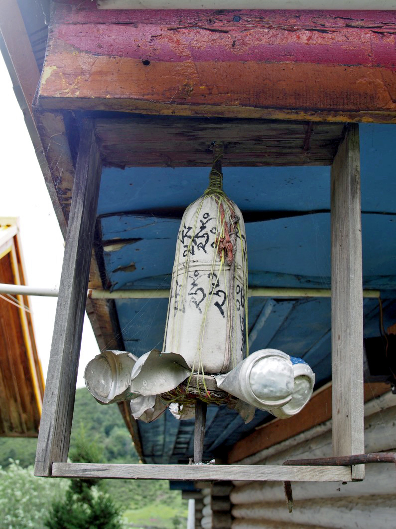 Po sedmé hodině padnul soumrak, starý „správce“ kláštera zapálil lucernu, kterou zavěsil na dlouhou tyč, která tvořila pravý úhel se skalní stěnou, byl čas večeře. Servírovalo se výtečné tofu připravené z místní vody, který zurčela z každé pukliny. Pak také nějaká zelenina a samozřejmě místní ostrá omáčka. Poté, co jsme se přežrali k prasknutí a krátce podebatovali, jsme se vydali zběžně prozkoumat útes. Ve „druhém patře“ jsme nalezli „taoistickou místnost“ a o kousek dál už Buddhu, Konfucia a Laozi, bok po boku trůnicích v jedné skalní výduti. Jedna ze soch měla brýle, na kterých se ještě houpala cenovka. Na podobný úkaz jsme narazili několikrát, pokaždé se nám dostalo úsměvného a velmi „čínsky logického“ vysvětlení, že „už jsou staří, a kdyby neměli brýle, neviděli by.“ Několik brýlí dokonce leželo i na místě, kam se přináší ovoce a jiné obětiny.