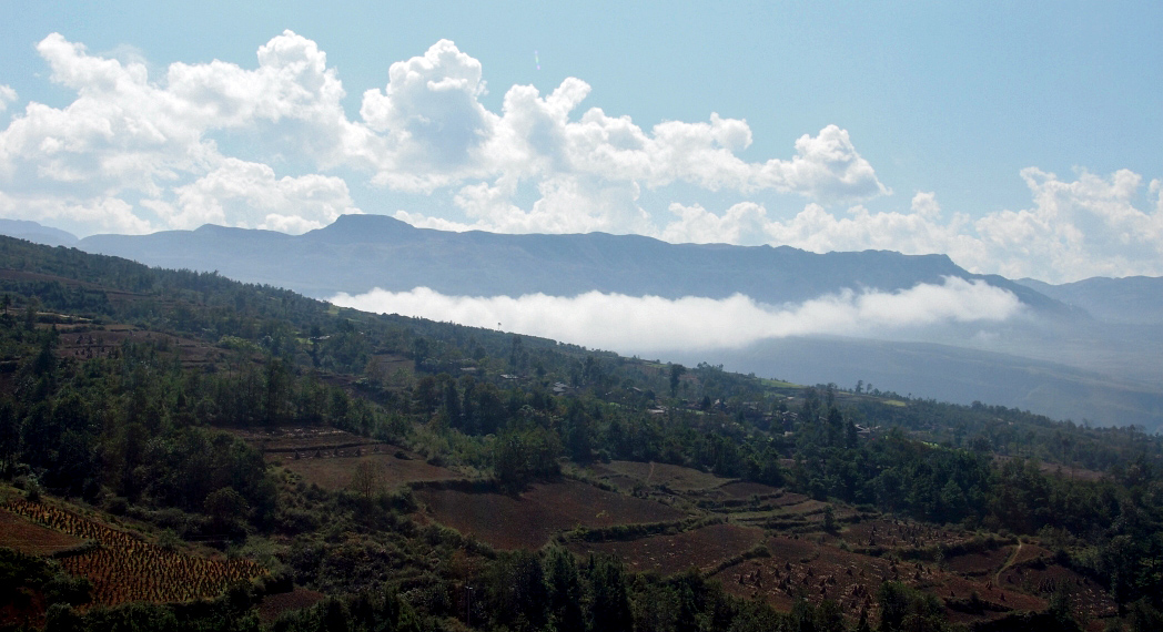 Ta zpočátku vedla mlhou. V jednu chvíli se její satén zvedl a odhalil moře mraků, nad nímž seděly hory, bambusy a vesnice. Byl to úžasný pohled, připadal jsem si jako Xixao. Jen jsem neměl s sebou skleněnou lahev. Čas sice tlačil více než štěrk v ponožkách, ale nedalo se občas nezastavit a nekochat se pohledem. Mnoho záporů to nemělo. Za místem zvaném Lu-c'-čching mě na chvíli nabral náklaďák a odvezl k rozcestí, kde jsem se poprvé ztratil. Cvičně jsem si tak vyšel a zase sešel horu, pod jejímž vrcholem bylo podivné turisticky vyhlížející sídlo. Když jsem se zdánlivě ztratil už asi po třetí a má GPS ukazovala, že jdu v tom prázdnu jaksi opačným směrem, vzpomněl jsem si na šlahouny a opět začal vyvolávat kosočtverec. Ten se ale nakonec ukázal být dobrým kompasem. Postupem času jsem takto došel do místa zvaného San-ťia, odkud to do Chuej-sinu byly už jen tři kilometry a spolu se zapadajícím sluncem jsem se uklidnil. Když jsem minul patník s číslem 16, už jsem byl dost utrmácený. Po chvíli se zpoza zatáčky vynořilo sídlo sedící v jemném bílém oparu. Asi za padesát metrů jsem uzřel ceduli „Chuej-sin“. Malá duše uvnitř mého zpoceného těla, která se již smířila s tím, že obojí bude nocovat někde pod útesem, se o trošku více přifoukla.