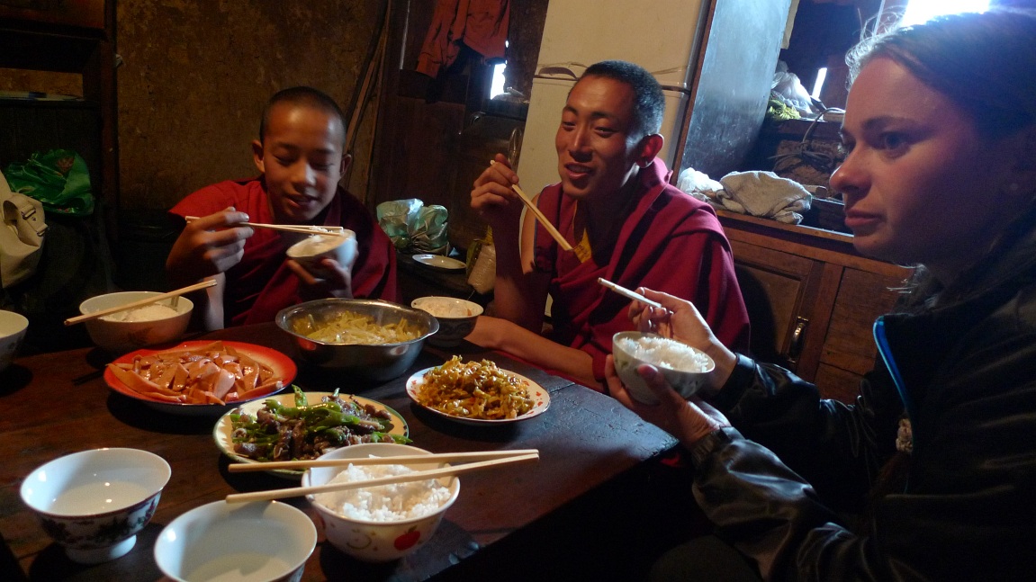 Po důkladném prozkoumání vápencové jeskyně, kterou jsme objevili za hřbitovem, jsme po vyškrábání se na přilehlou horu uviděli úžasný malý buddhistický chrámek, který spíše než cokoliv jiného připomínal perníkovou chaloupku. U chrámu bylo vše potřebné pro přežití, dokonce i studna. Bylo to vcelku ideální místo na „ústup do ústranní“. Když jsme se dole ve vesnici ptali, kdeže jsou ti místní buddhisti, většinou se nám dostalo nepřímé a vyhýbavé odpovědi. Usoudili jsme, že jejich komunita musí být tudíž poměrně uzavřená.